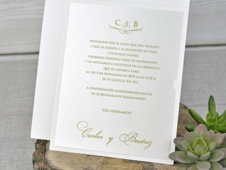 OPCIÓN EXTRA: posibilidad de impresión del texto en RELIEVE (solo a 1 color), esta impresión tiene un suplemento de 15€. Si quieres que tus invitaciones estén impresas con esta técnica por favor elige la pestaña de impresión en relieve.