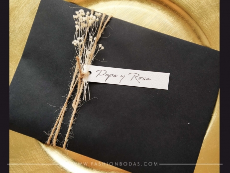 Decoración de sobres C5 para invitaciones de boda con yute, flor preservada y nombres de invitado impreso