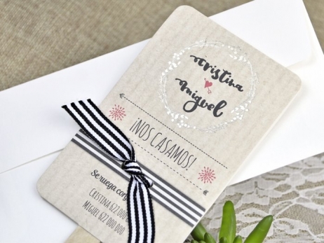 OPCIÓN EXTRA: posibilidad de impresión del texto en RELIEVE (solo a 1 color), esta impresión tiene un suplemento de 15€. Si quieres que tus invitaciones estén impresas con esta técnica por favor elige la pestaña de impresión en relieve.