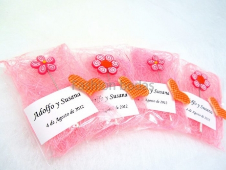 PRESENTACIÓN / DECORACIÓN INDIVIDUAL de ALFILERES de boda en celofan