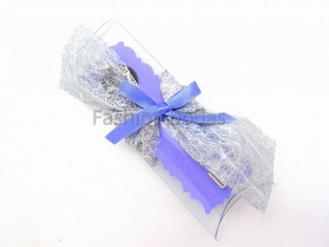 El precio incluye: material (cajita, lazos, plumas, rafia, cartulina etc ...) la mano de obra y te REGALAMOS  la tarjetita personalizada con vuestros nombres y la fecha a juego con la presentación. NO incluye alfiler, hay que comprarlo aparte.